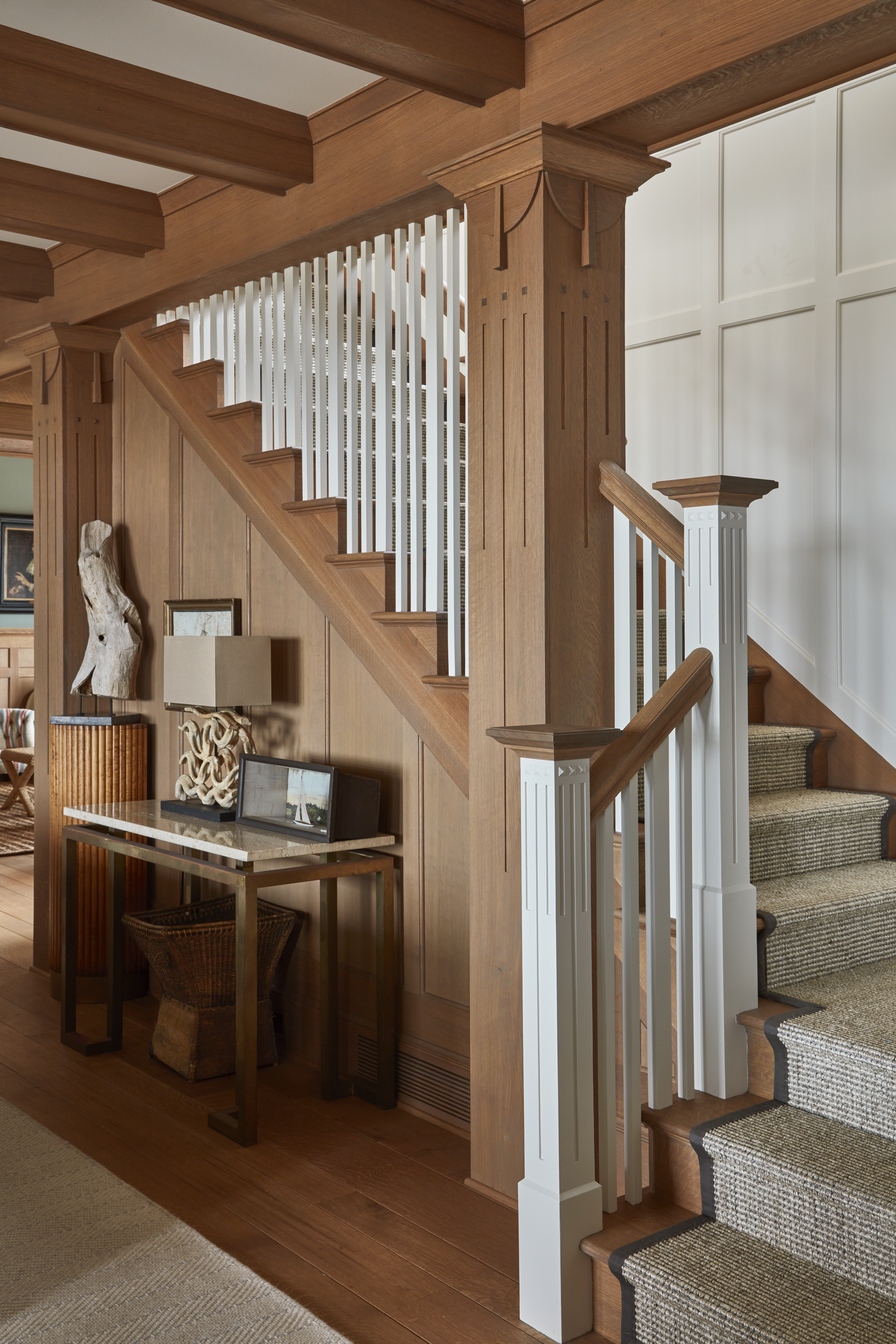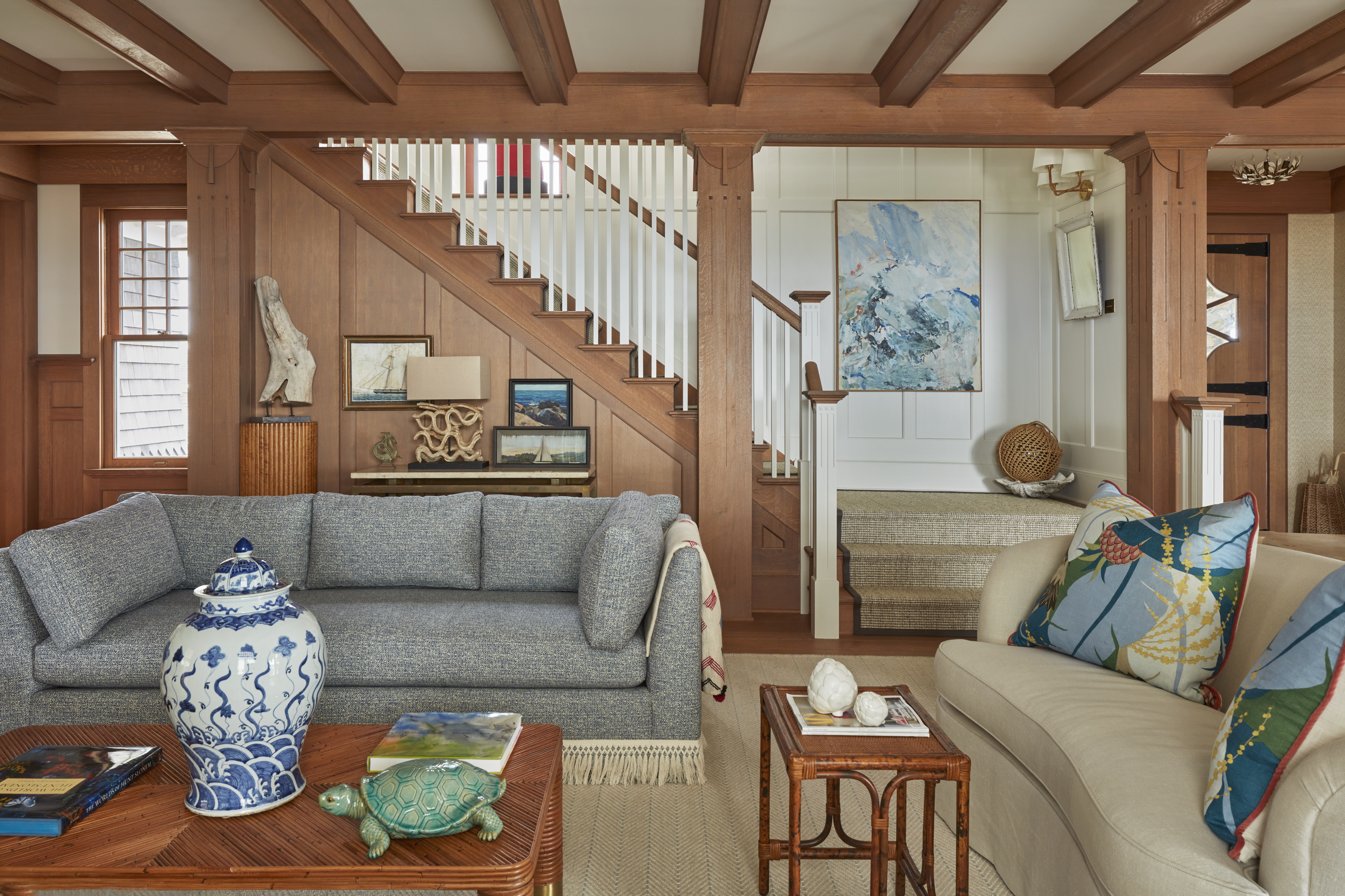 Preserving the original character of the home was paramount, while updating the infrastructure and systems to ensure the home would thrive for another 100 years. Building on the home’s legacy of strength and adaptation, the structure was lifted and moved landward from its previous location within the dune. This pivotal move ensured the home’s safety and endurance, while maintaining ocean views and creating additional space for indigenous flora and fauna. Original architectural features such as stone veneer foundation plinth, stone fireplaces, and Arts and Crafts woodworking (on both the interior and exterior) were restored, enhanced, or recreated where necessary. Exquisitely curated interiors bring the home to life in a unique way, honoring the past with meticulously sourced antiques, while welcoming modern comforts, functionality, and taste. Each of these tremendous efforts of land, house, and home, result in an outstanding space, with a unique story, and a bright future.